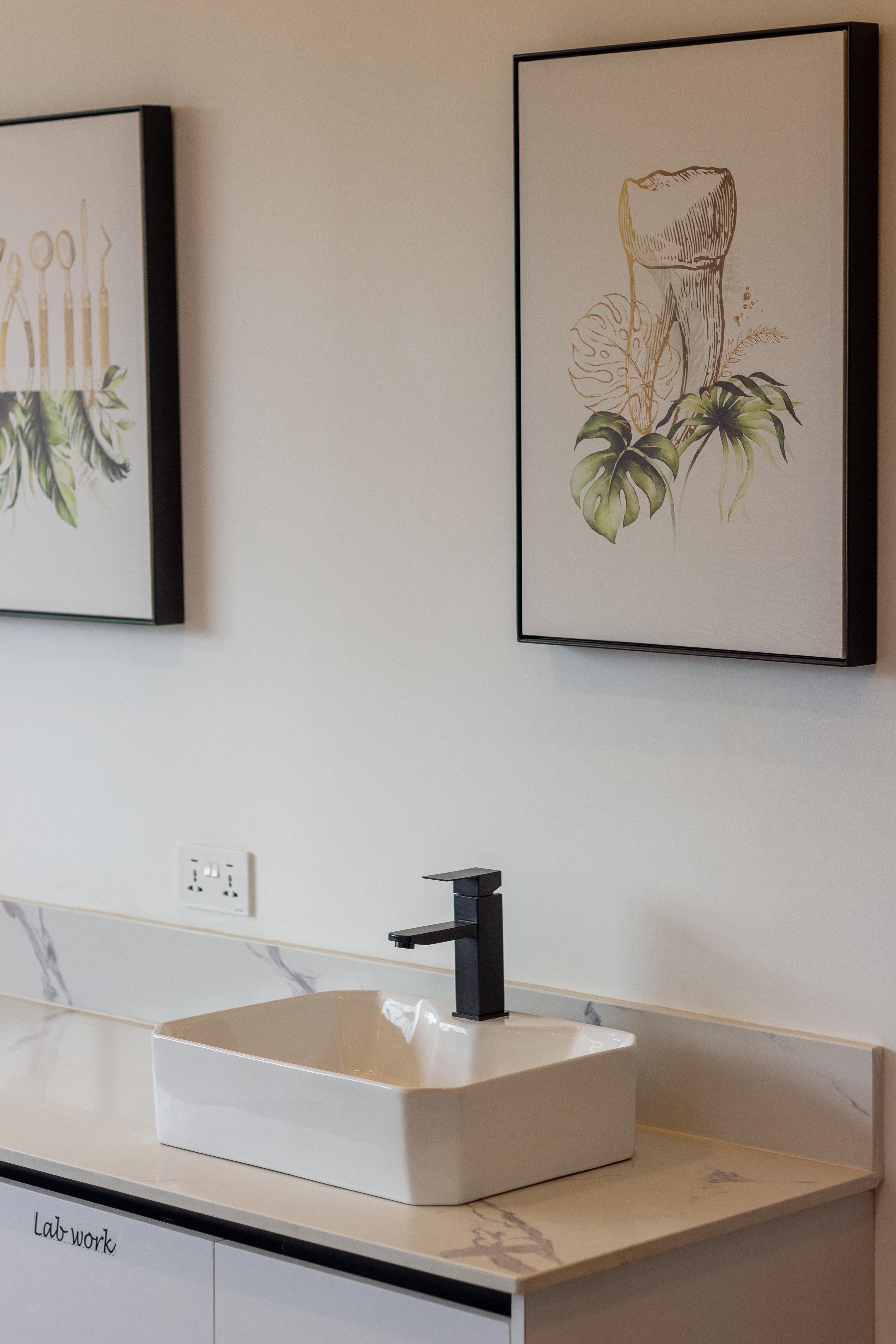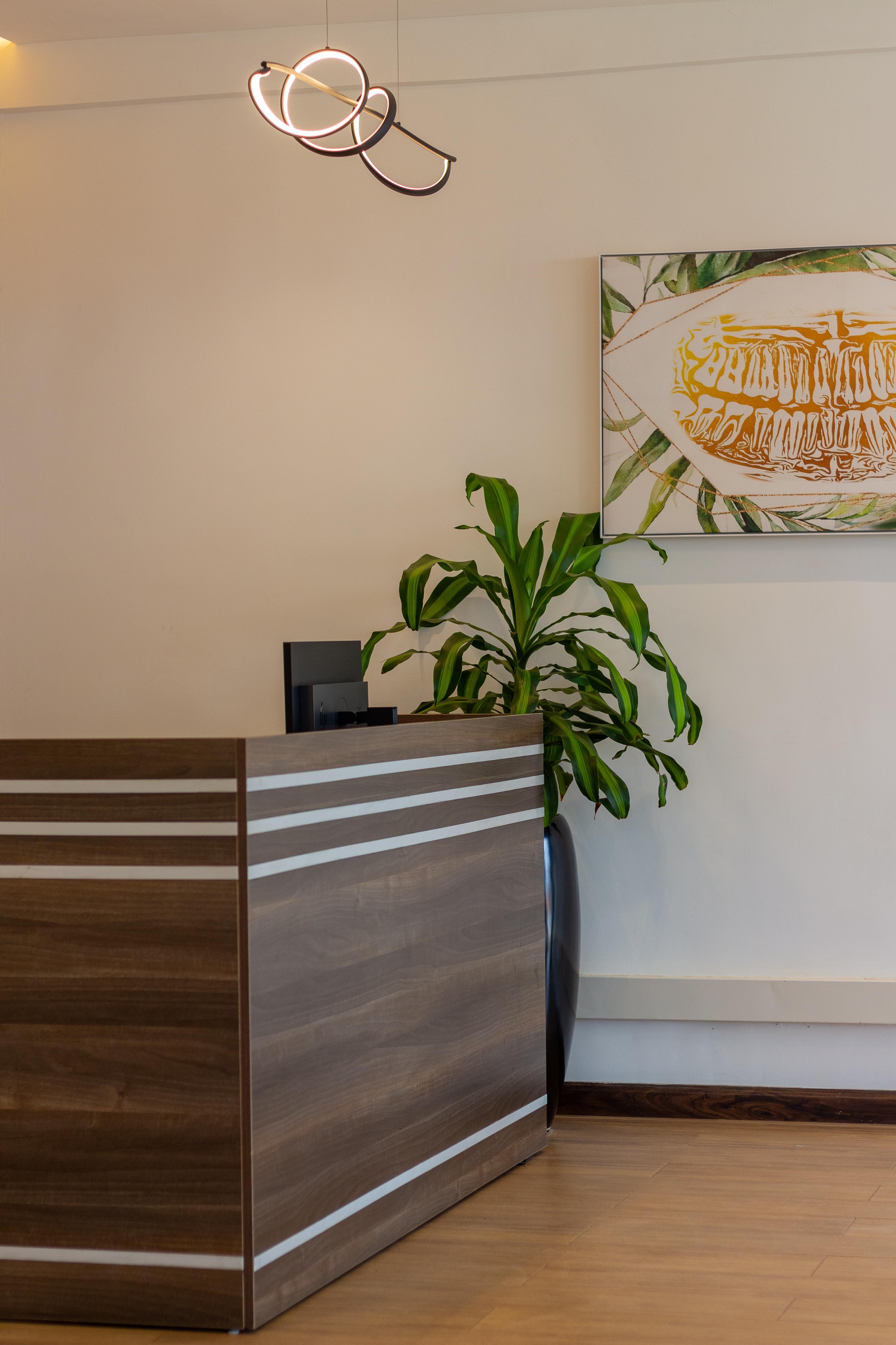 This project involved a full-scope design service for a dental clinic located in Nanyuki. Our approach was to design a dental clinic that re-imagines patient care through calming minimalism and future-ready planning. The client's brief called for a space that would feel functional, future-proof, and soothing with a focus on patient comfort and workflow efficiency for practitioners. We adopted a contemporary minimalist design language that emphasized clean lines, neutral tones, and a sense of calm throughout. The clinic's layout was carefully planned to ensure spatial flow and long-term adaptability. Key zones include a welcoming reception, a waiting area with built-in provisions for a future surgery room, a consultation room and the main dental surgery room separated visually by a frameless glass partition. Additional support spaces include a sterilization room, compact kitchen, and washrooms, all designed for seamless daily operations. The material palette was built around the client's love for rich, grounded wood tones. We therefore developed our material palette with walnut toned joinery as the base, contrasted with warm wood finish floors, crisp white walls, and subtle mint green accents reflected in the logo, furniture, kitchen finishes, washroom vanity stone, and even the selected plants. A textured feature wall at reception adds visual interest, while still maintaining the minimalist feel. To enhance both function and atmosphere, we implemented a layered lighting scheme, incorporating ambient, task, and decorative lighting. The result is a clinic that feels both professional and profoundly welcoming: a place where thoughtful design supports wellness, flow, and comfort for patients and practitioners alike.