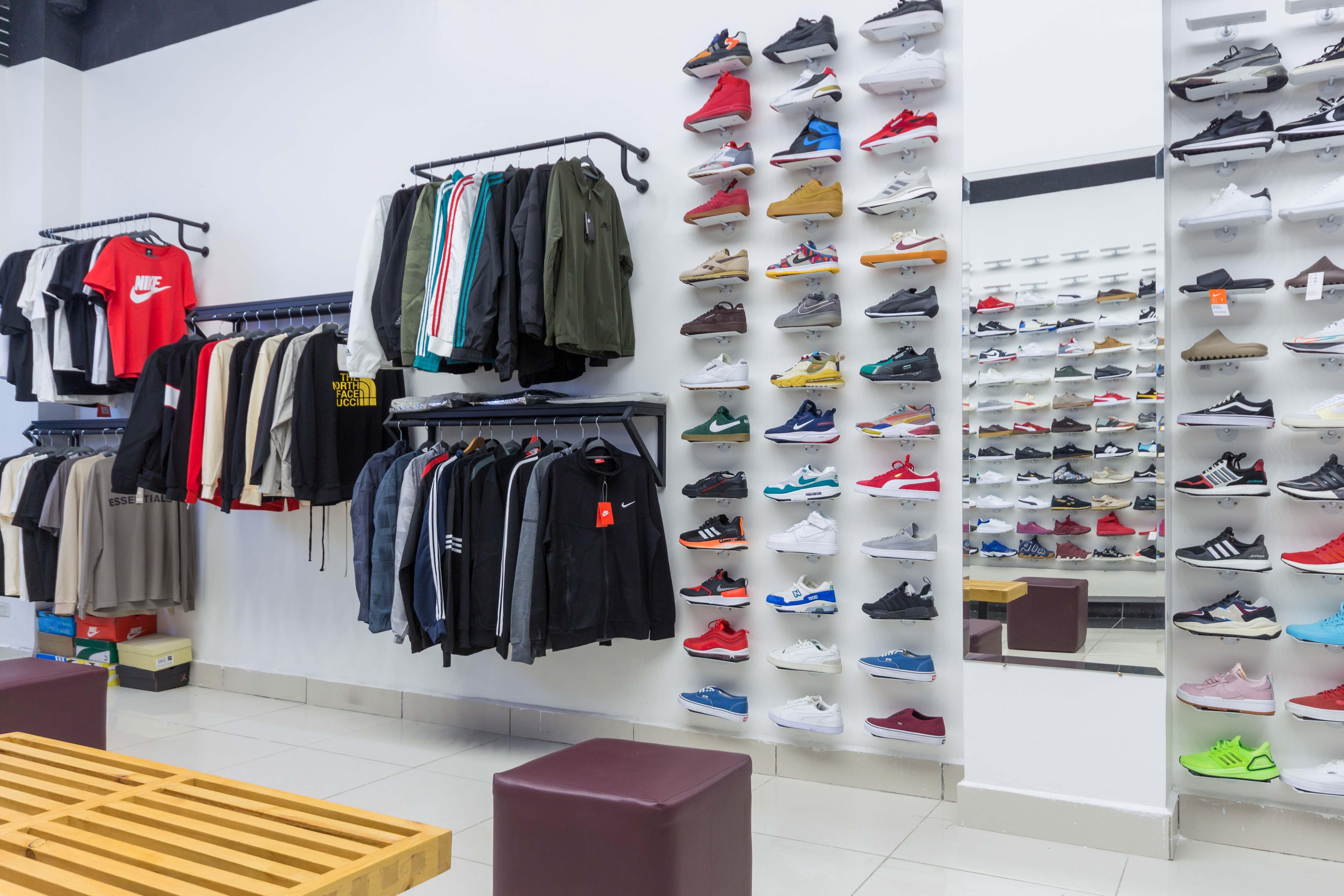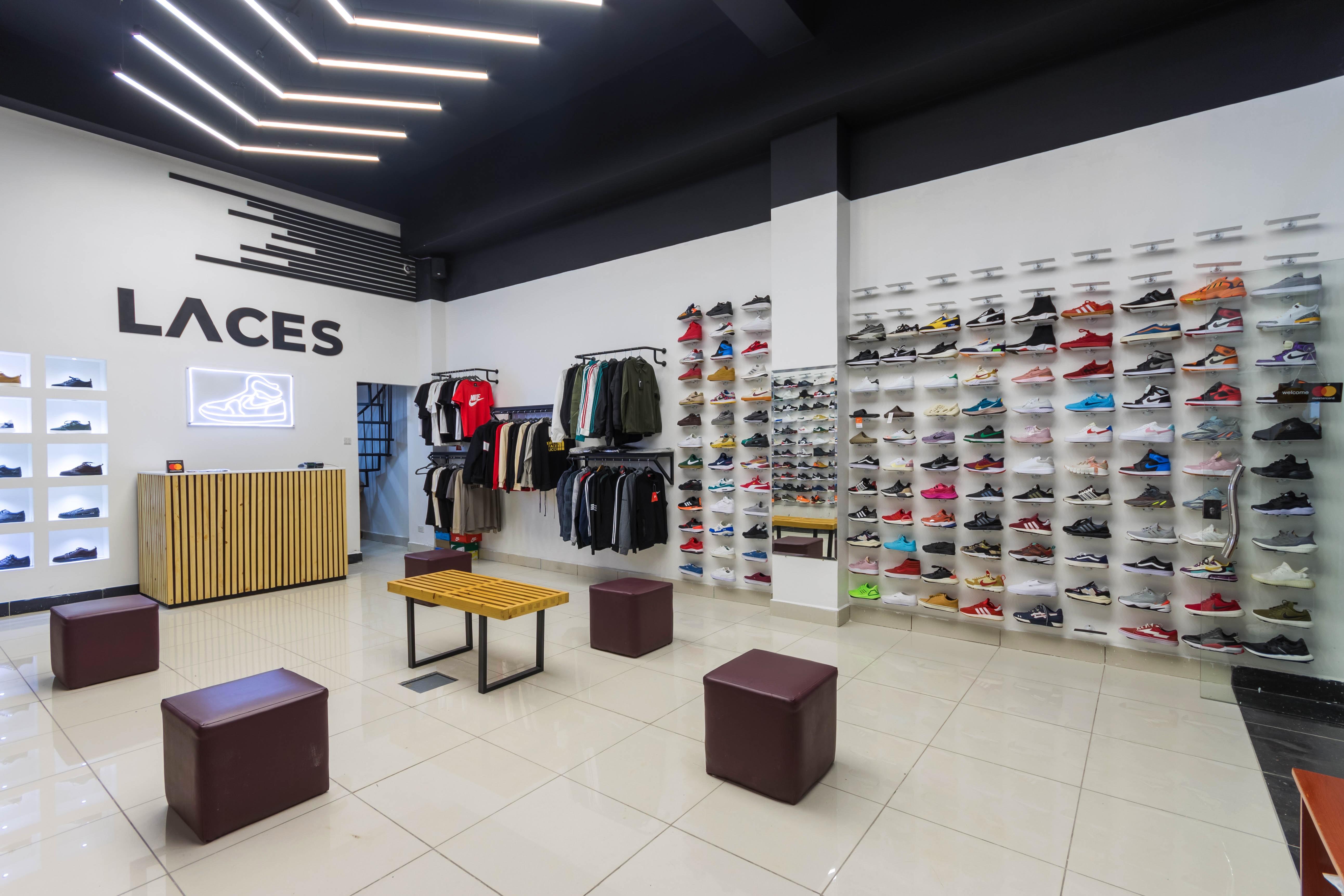 We reimagined this retail space into a simple, bold yet sophisticated destination for designer shoes and apparel, driven by our client’s vision for a clean, minimalist aesthetic with black and white accents. Embracing the dramatic scale of the original double-volume ceiling, we preserved its sense of grandeur while introducing a custom steel mezzanine behind the reception, adding functional storage without compromising visual openness. The design takes a pared down approach, with matte black ceilings, simple wall treatments that enhance contrast, draw focus to curated lighting, and create a gallery like backdrop for the merchandise. A simple feature wall, layered with horizontal black panels, anchors the space and showcases the brand’s logo and statement neon sign, both focal points that exude modern edge. Around the perimeter, matte black display racks and crisp white walls frame the products like art, allowing each item to stand out in a deliberately restrained environment. This project is a seamless fusion of function and form, where a monochromatic palette and intentional lighting come together to create a retail experience that is both elevated and memorable.